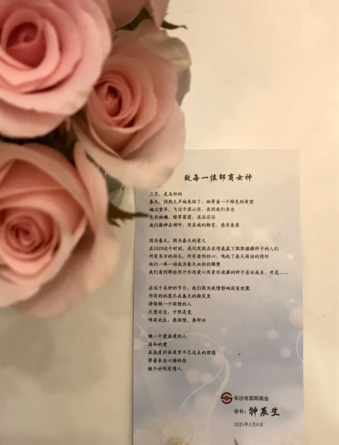 2020 年 3 月 8 日女神节前夕,长沙市邵阳商会全体的女会员,收到了这样一条信息: