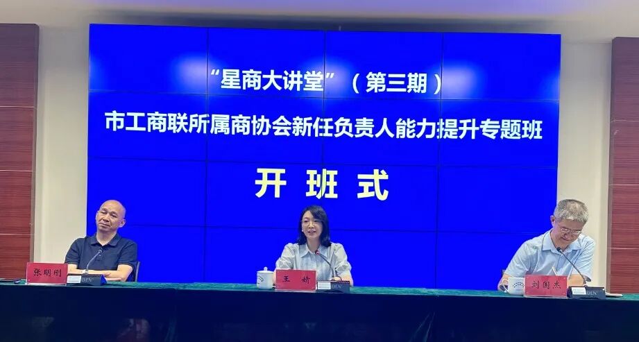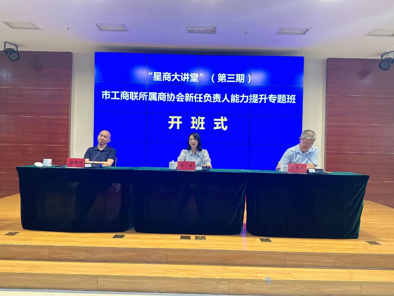 市委党校二级巡视员刘国杰,市工商联党组成员、副主席王婧出席开班仪式并作动员讲话,市工商联二级调研员、市商协会组织联合党委书记张明刚主持,36家商协会的80余名学员“集体充电”。