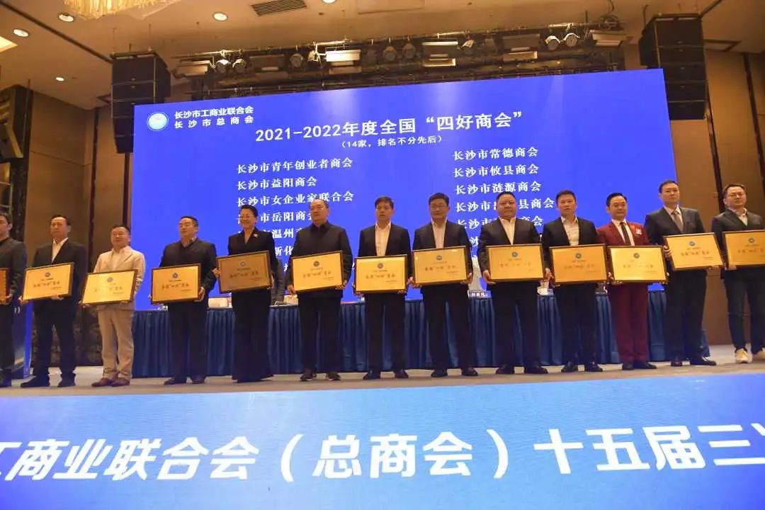 长沙市邵阳商会荣获2021—2022年度全国“四好”商会、全省“四好”商会、金融服务工作先进集体;执行会长聂志强荣获2023年全市工商联系统优秀社情民意信息一等奖一篇,二等奖三篇;常务副会长康望才荣获长沙市工商联第十五届优秀轮值主席(会长);常务副会长单位万鑫精工股份有限公司、湖南汉坤实业有限公司,优秀会员单位天地人律师事务所荣获光彩事业先进民营企业;执行秘书长徐巧平荣获金融服务工作先进个人。