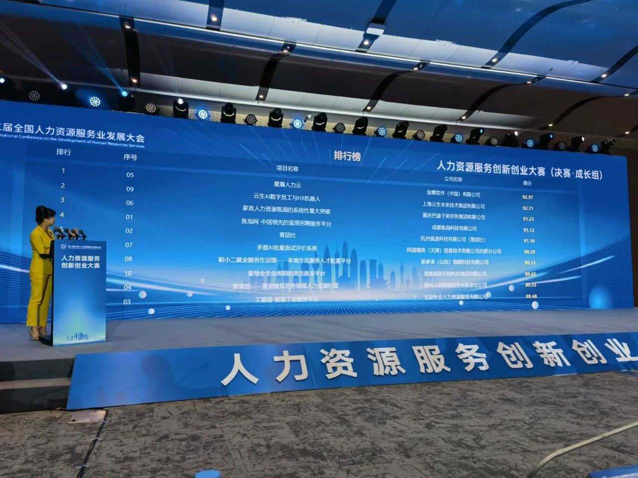 经过激烈角逐,湖南成为全国14个进入决赛的省份之一,取得该领域历史最好成绩。董事长郭东海(泳辰)作为湖南省唯一家以《蓝领全生命周期的灵活就业平台》项目,进入创新创业成长组决赛,并夺得本次大赛成长组的第8 名,同时获得人力资源服务创新创业大赛全国二等奖!