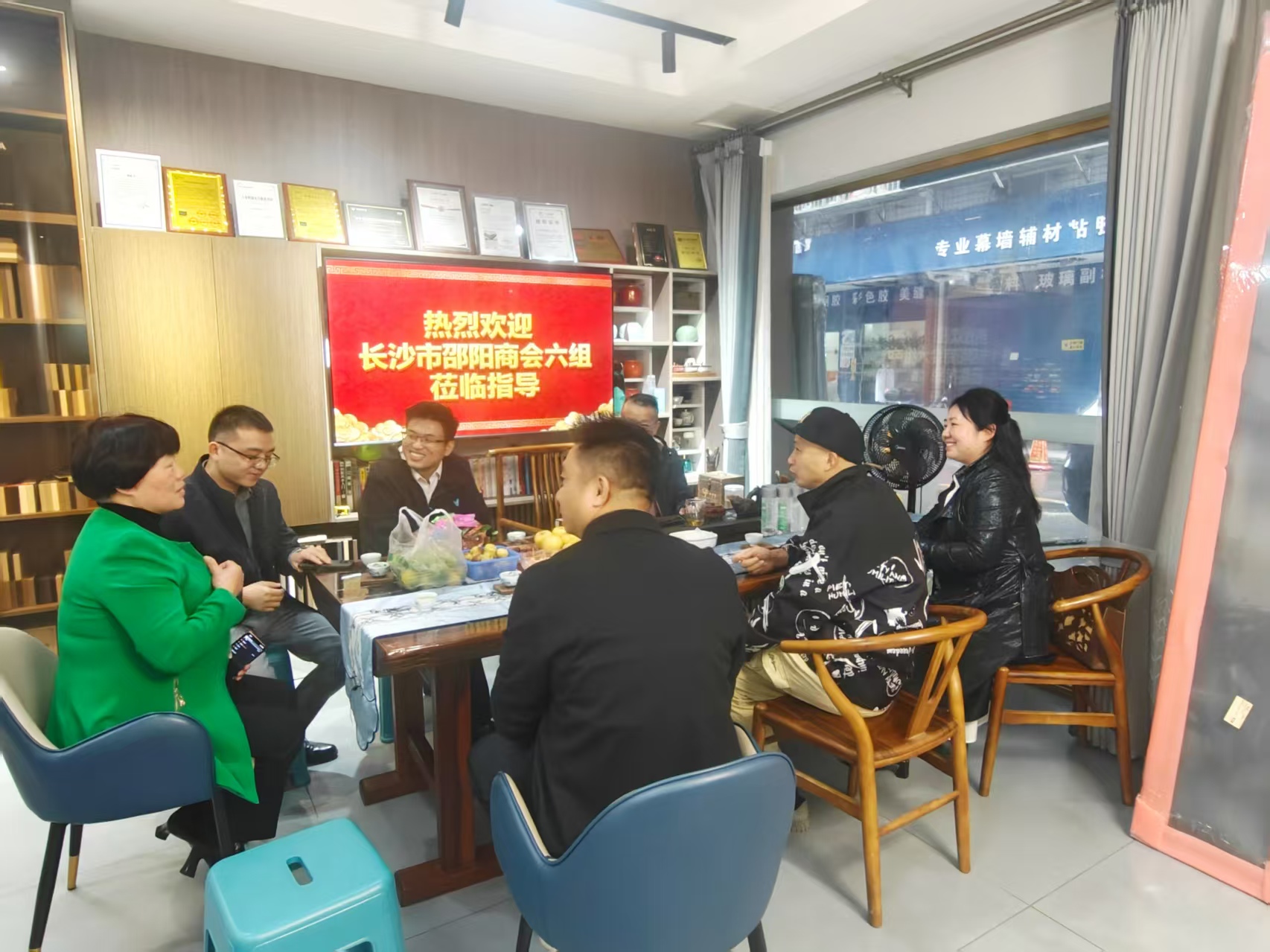 第二站抵达位于长沙市芙蓉区马王堆新合村五村D-6栋的湖南邦创家居建材有限公司。总经理刘立坤对走访团队的到来表示热烈欢迎,并衷心感谢商会对会员企业的关心与支持。