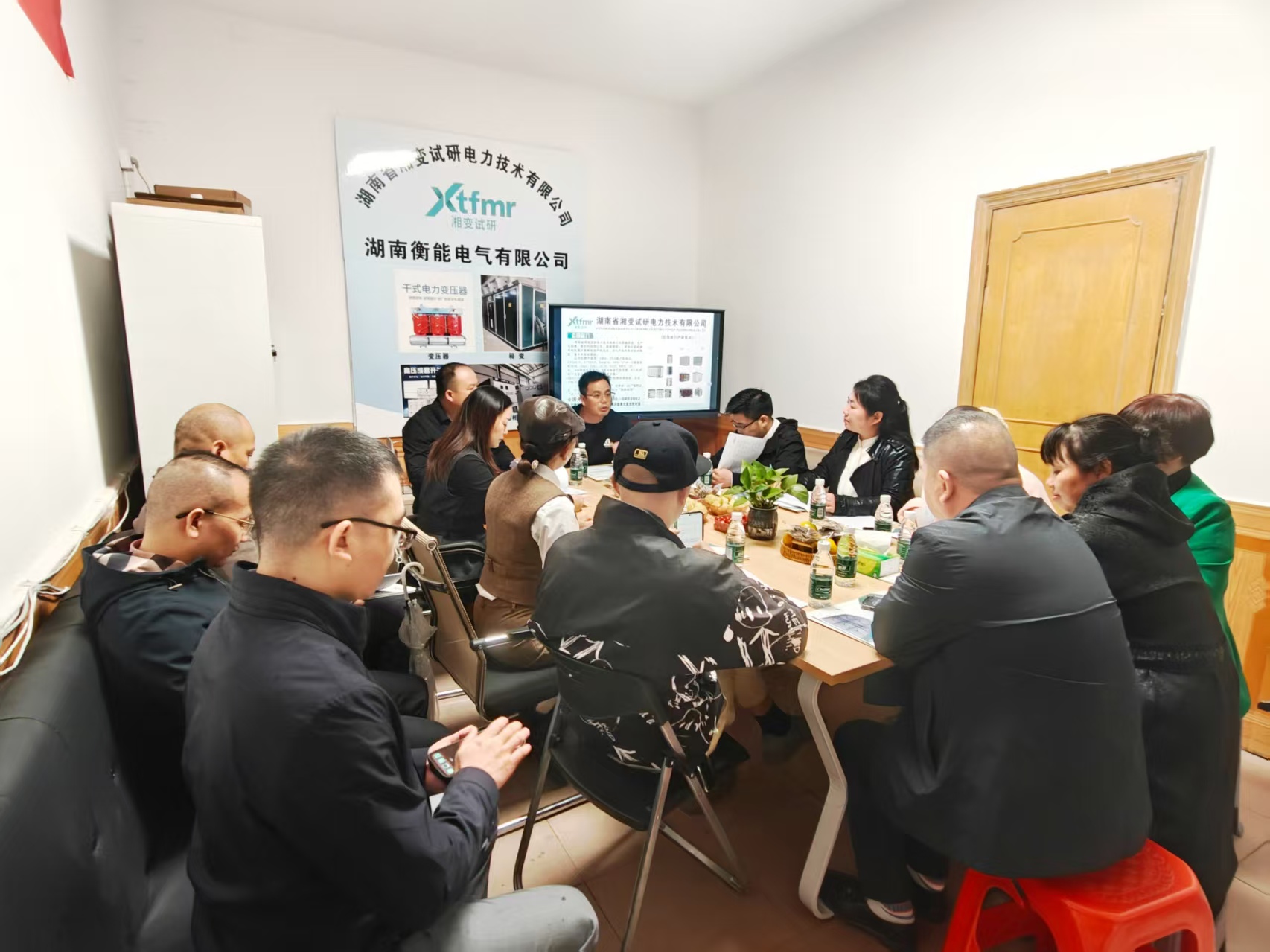 走访第一站来到位于长沙县黄兴大道北溪路的湖南正电智能科技有限公司。公司总经理周小军热情接待并全程陪同参观生产车间,详细介绍企业在变压器生产、变压房安装及电力配套服务方面的专业能力。
