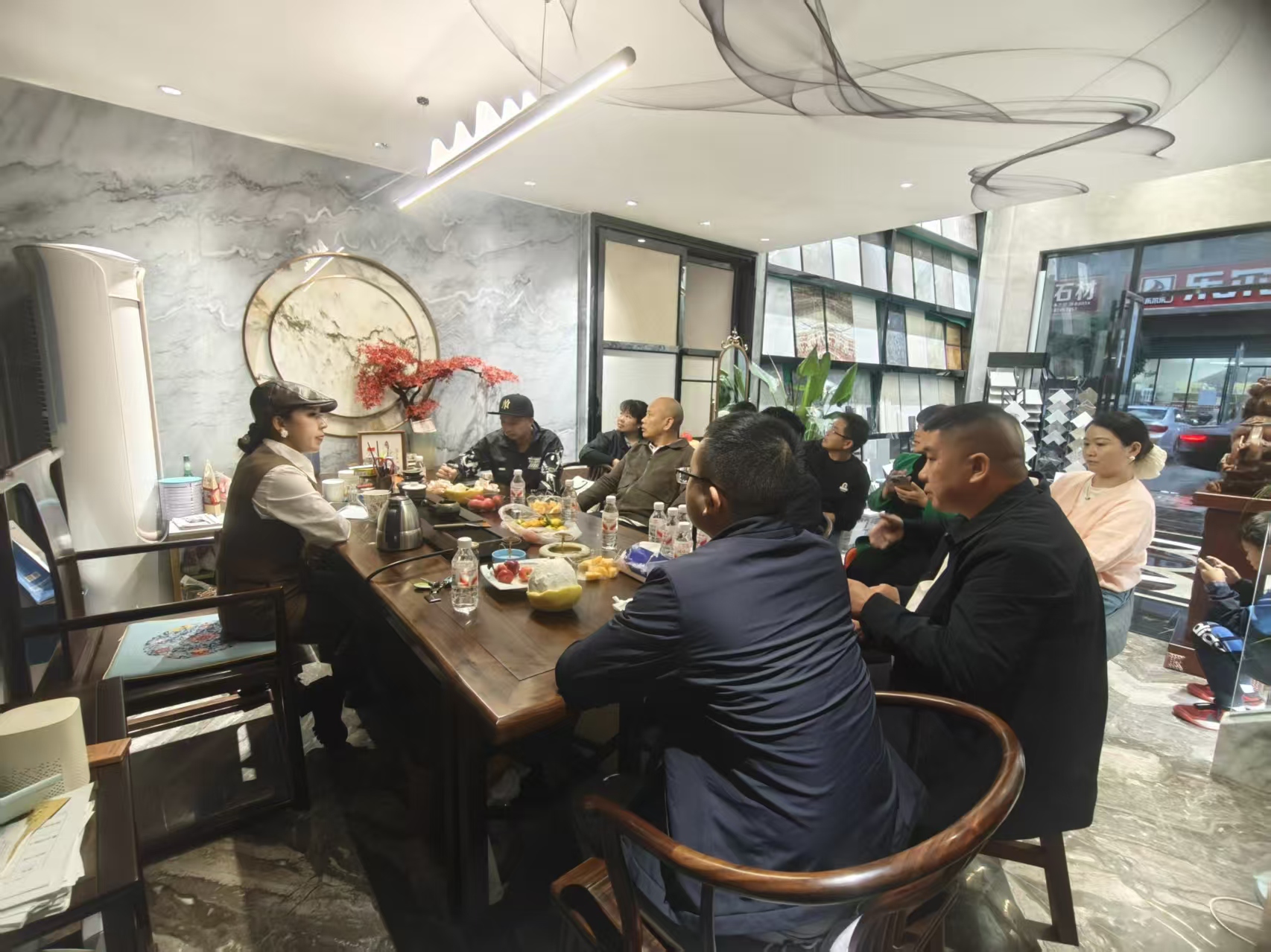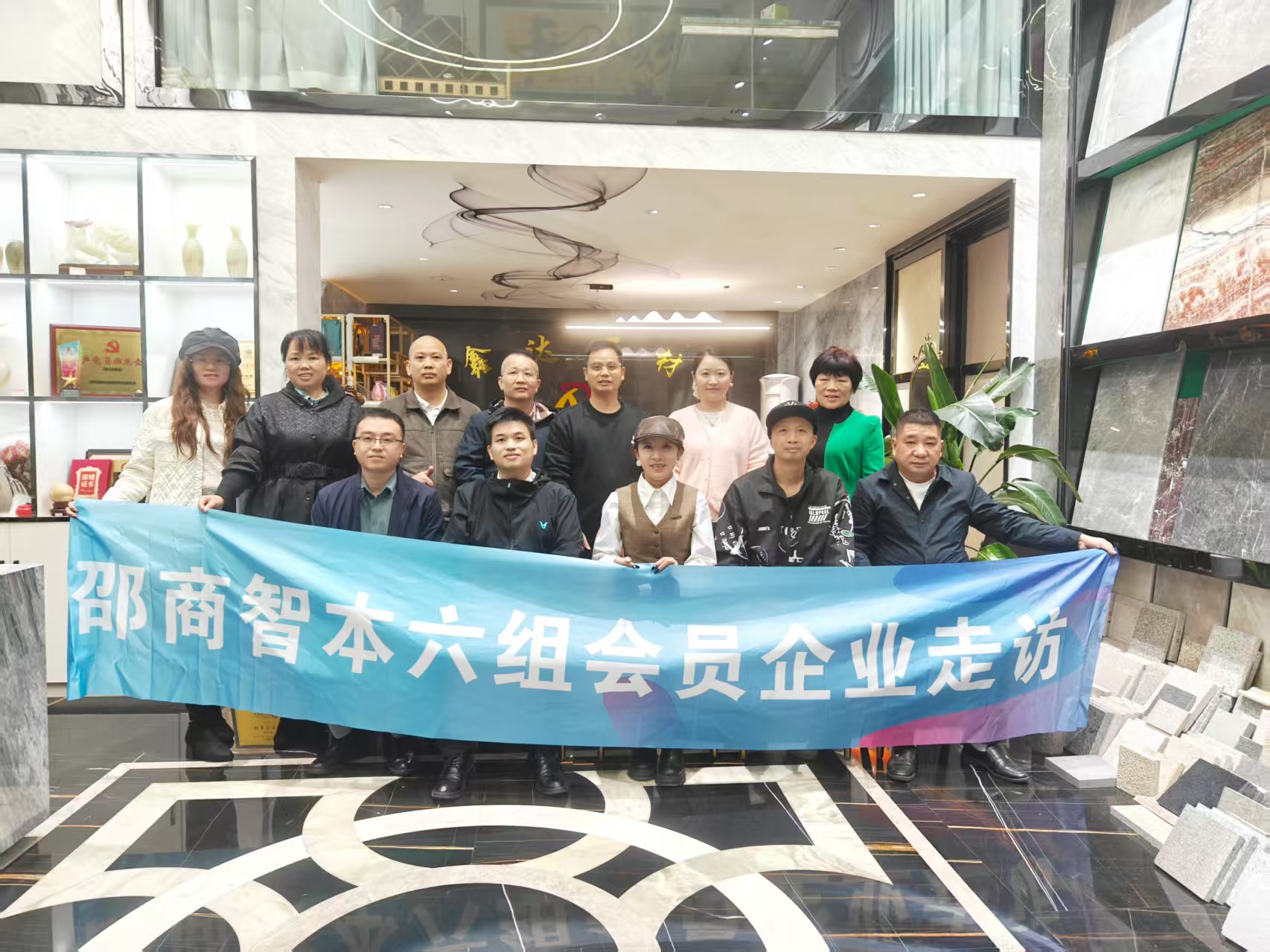 最后一站来到位于长沙县安沙国际建材城的鑫达石材。作为智本六组组长,李和珍以“回家”二字温暖迎接每一位组员的到来,浓浓的乡情与归属感瞬间拉近了彼此距离。