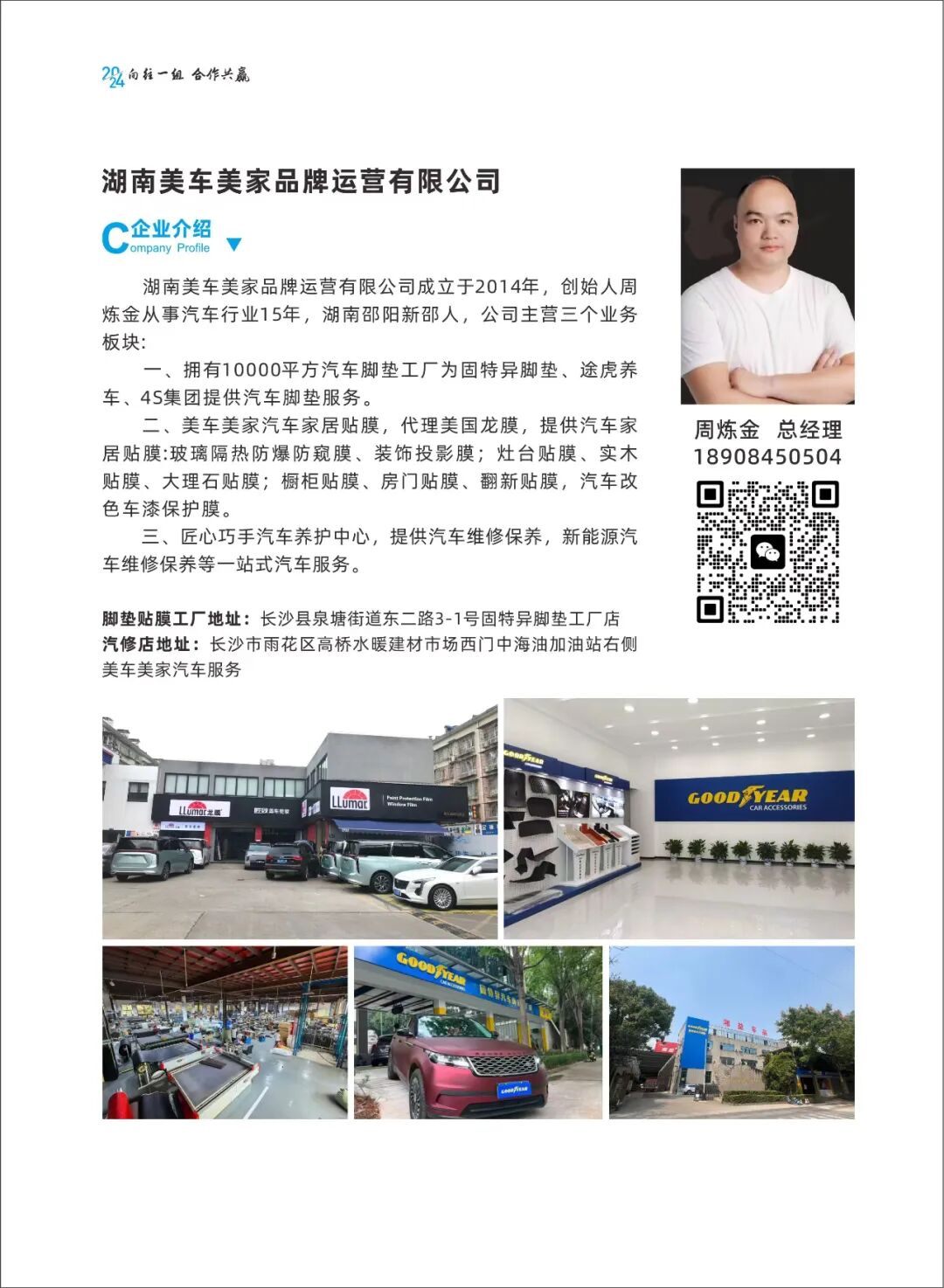 美车美家品牌运营成立于2014年,脚垫贴膜汽美连锁服务商,为数十家4S店,数百家名车维修汽美贴膜门店提供脚垫、贴膜、高端汽美服务,公司为固特异脚垫湖南运营,代理龙膜窗膜龙膜漆面保护膜、AX改色膜车衣、森德雷(森小侠) 窗膜漆面保护膜、紫牡改色膜。