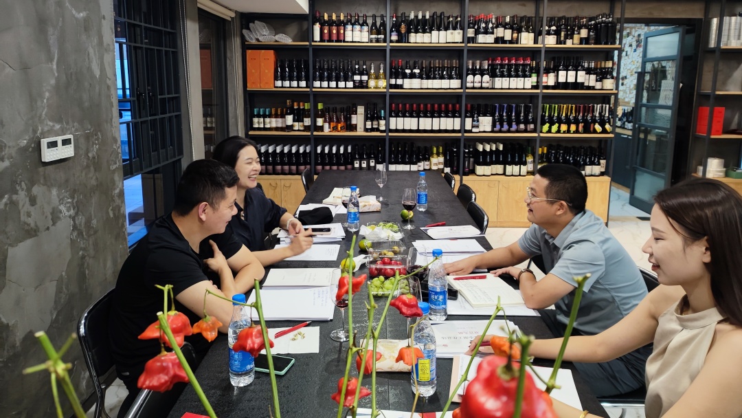 本次会议选址颇具匠心。设在会员企业长沙壹葡壹酒业有限公司的品鉴空间,四周酒架林立,空气中弥漫着橡木桶与葡萄果香交织的气息。