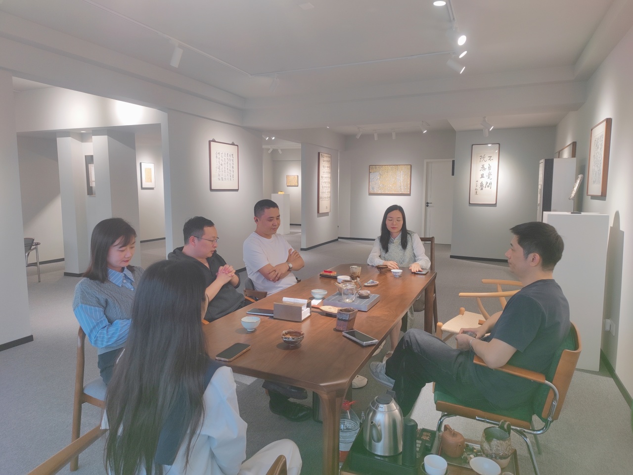 2025年10月14日下午,长沙市邵阳商会文化三组在组长吴强的组织下,在向未部长创办的“手和艺画廊”召开换届筹备工作及战略签约活动专题交流会。五组组长李杰作为特邀嘉宾出席,副秘书长林小娟、三组文艺部长向未、商会会员部部长魏小云等共同参与此次交流。