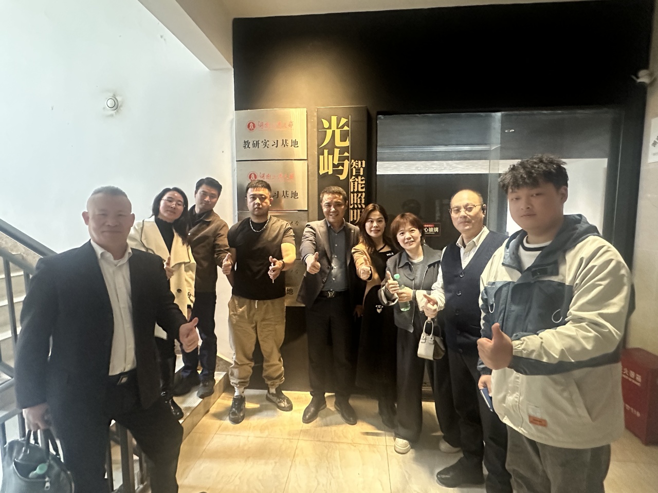 午后暖阳斜照,小组转赴深圳市光屿电器有限公司长沙分公司。创始人王萌先生早已等候多时,并以一场沉浸式的灯光体验拉开交流序幕。