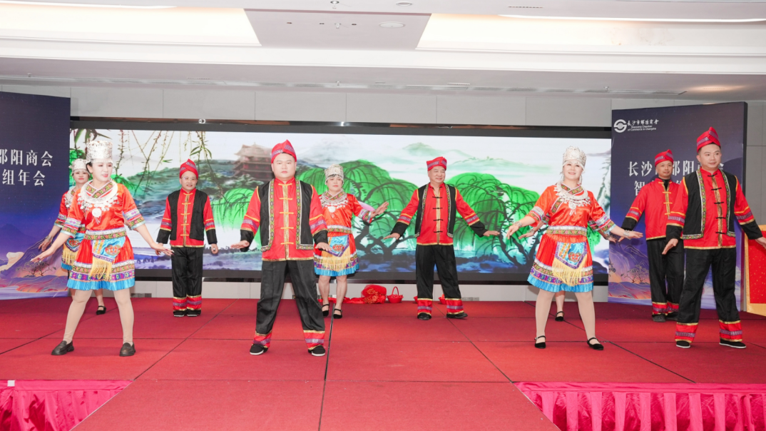 文艺演出将现场氛围推向高潮,六组成员自编自演的舞蹈《郎在高山打一望》悠扬婉转;廖俊逸演唱的歌曲《追梦赤子心》充满深情;杜凯、刘浩表演的快板《伢子颂》妙语连珠;邵商二代、三代的孩子们,诗词朗诵《沂台颂·酒以载道》文采斐然;六组会员男模“沂台秀”青春洋溢;邱玉初、周茂表演的相声《猜谜语》诙谐逗趣,赢得阵阵掌声;邵东籍著名音乐人尹啸献唱原创歌曲《邵东人闯天下》,唱出邵商儿女敢闯敢拼的精神风貌。