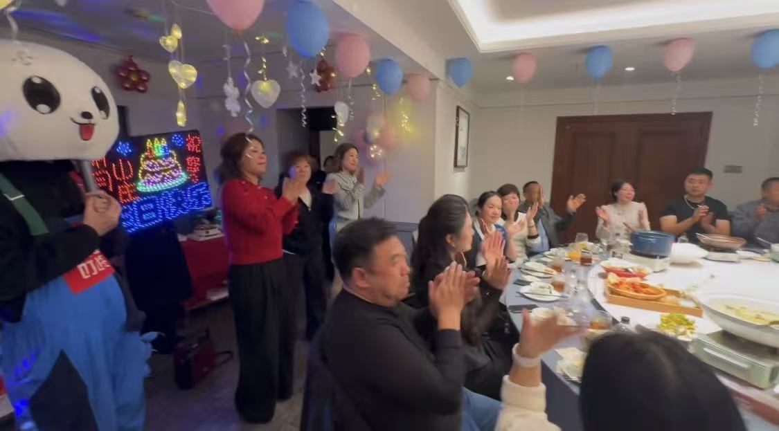 当《生日快乐歌》轻轻响起,定制蛋糕缓缓推出,烛光映照寿星们的笑脸。全场齐声祝福,寿星代表许愿、切糕,甜蜜与团圆在这一刻具象成真。