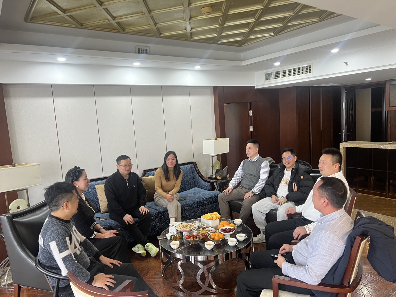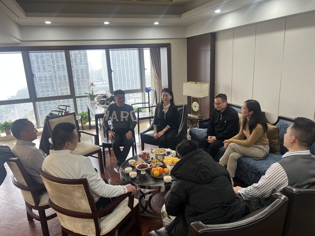 活动伊始,副秘书长柳玙邀请组长吴强一起用热情的歌声开启接待,随后详细介绍其企业发展历程与业务布局。作为兼具音乐专业背景与金融投资经验的跨界创业者,柳玙现专注于私募基金、港股资产配置及财富管理等领域,其将艺术审美融入商业实践的独特路径,赢得大家高度赞赏。与会人员围绕资源整合、优势互补、协同赋能等议题展开深入交流,现场氛围融洽而富有建设性。