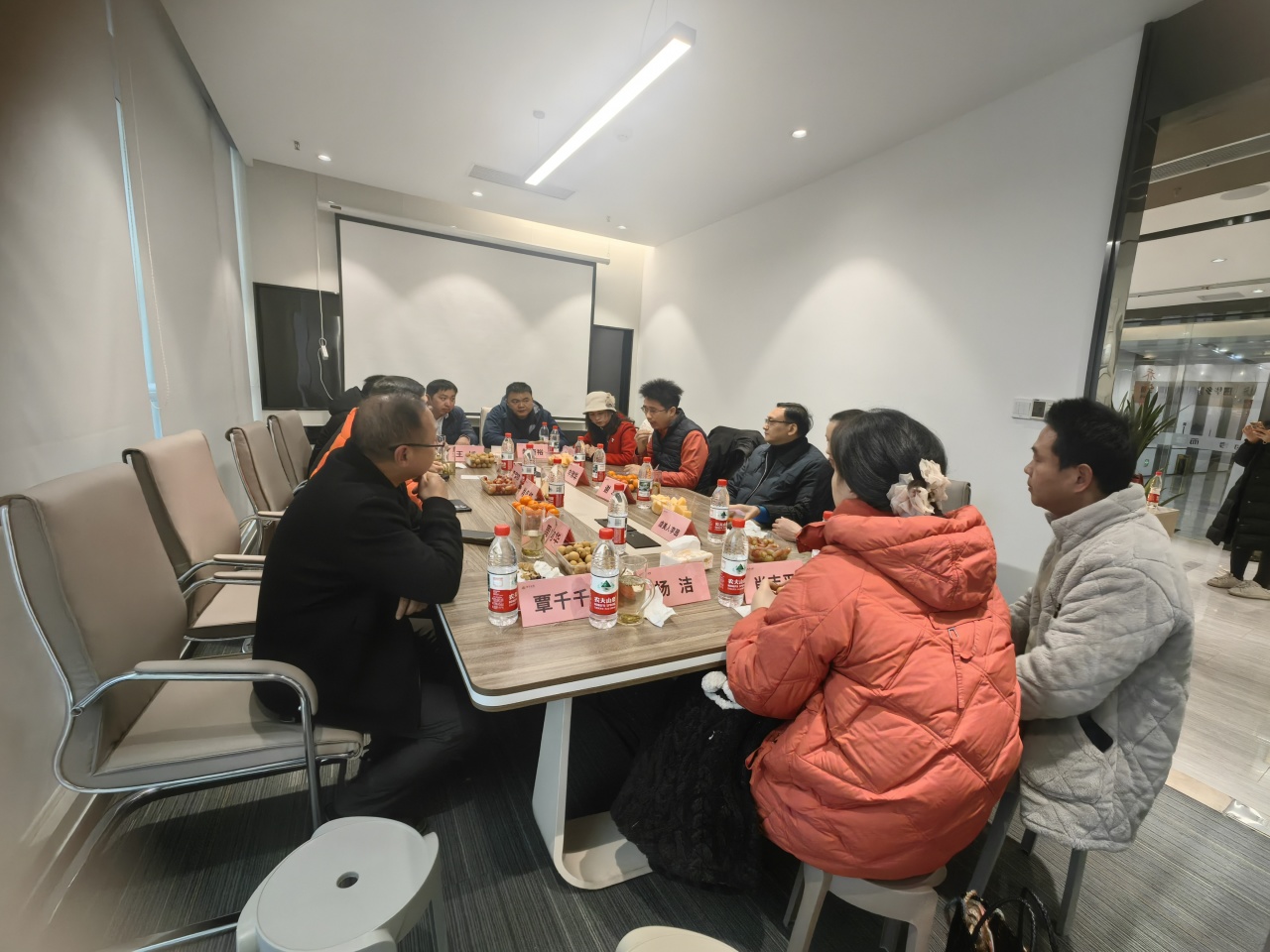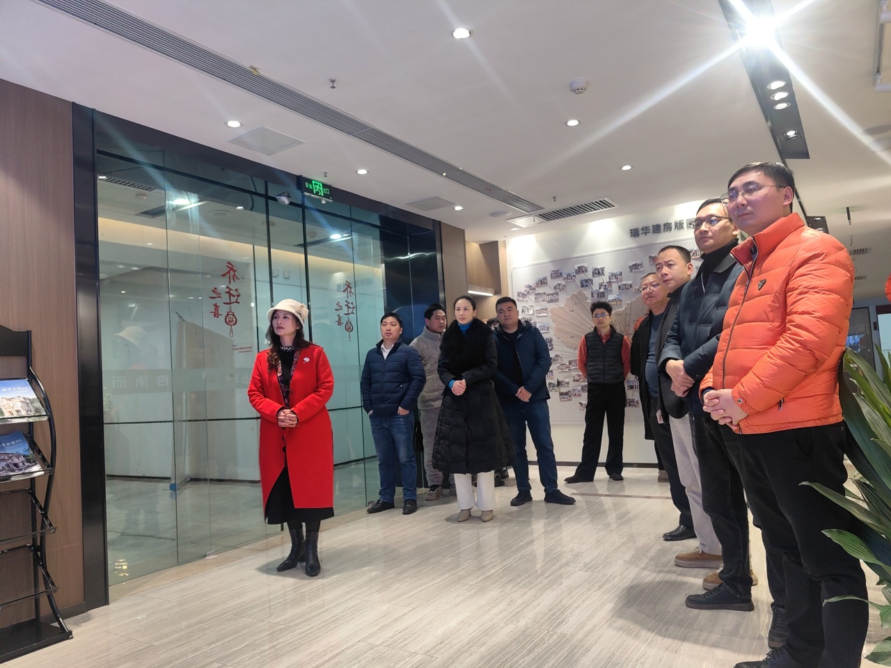 当日窗外寒风凛冽,室内却暖意融融、气氛热烈。申读华组长对七组一行的到来表示热烈欢迎,首先带领大家观看企业宣传资料,并实地参观现场样板展区,直观展现企业产品特色与品牌实力。“一组和七组是荣辱与共、水乳交融的好兄弟。”申组长开篇便拉近两组距离,随后详细介绍湖南瑞华乡墅科技有限公司的发展历程、核心业务及市场布局,分享自身对家居建材行业发展趋势的深刻洞察。