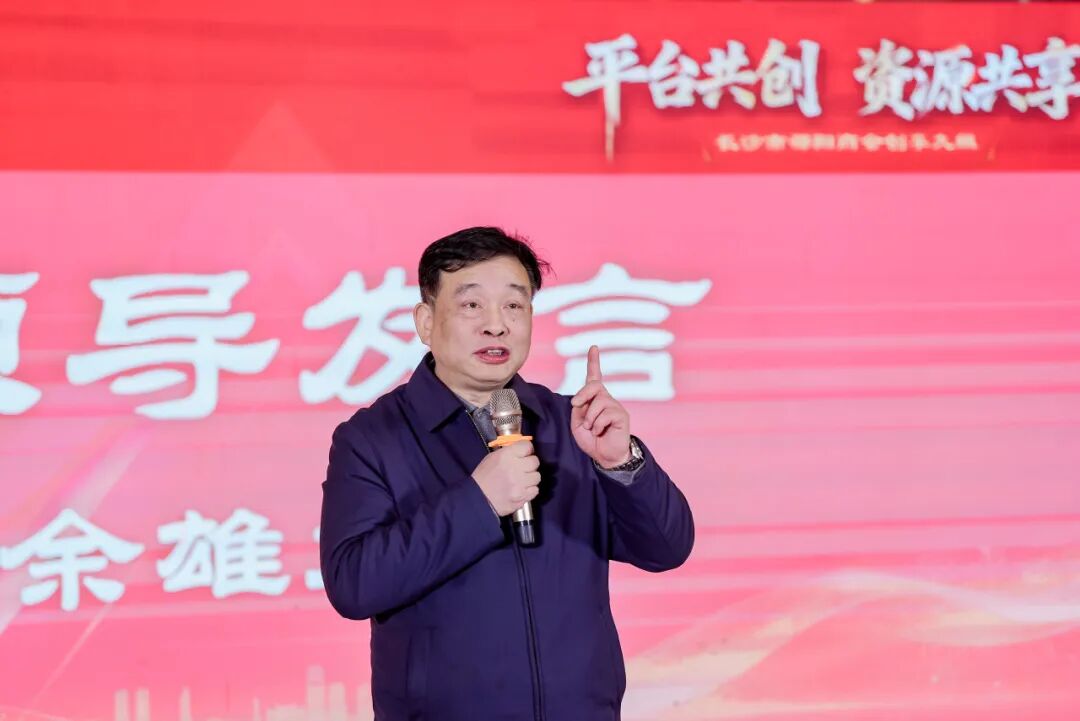 湖南省人民代表大会农业与农村委员会主任委员余雄在发言中表达对党和政府政策的坚定支持,强调企业发展与国家目标同频共振,呼吁团结协作,共创未来。