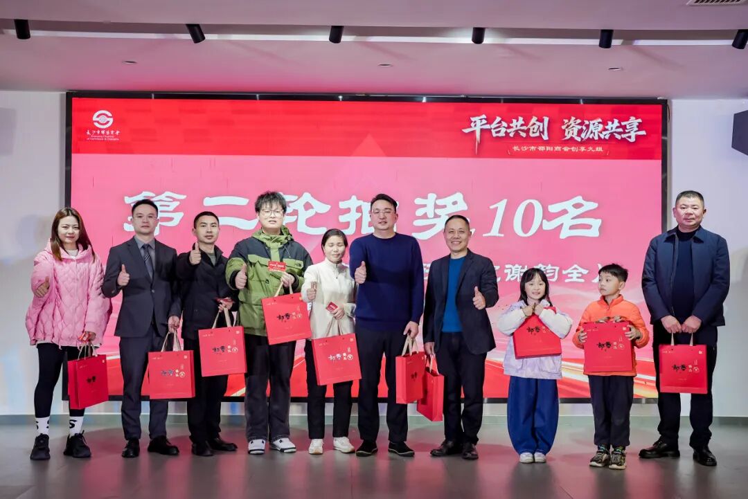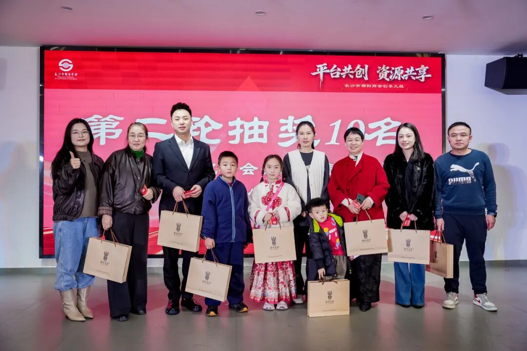 本次年会奖品丰厚,感谢蔚来长沙、云山院茶学研究院、湘丰山庄及多位会员单位的大力支持。现场设置六轮抽奖,送出红酒、字画、邵商茶、青钱柳小罐茶、美容体验券、定制鞋等礼品,每一位中奖的嘉宾都收获了满满的祝福与幸运。