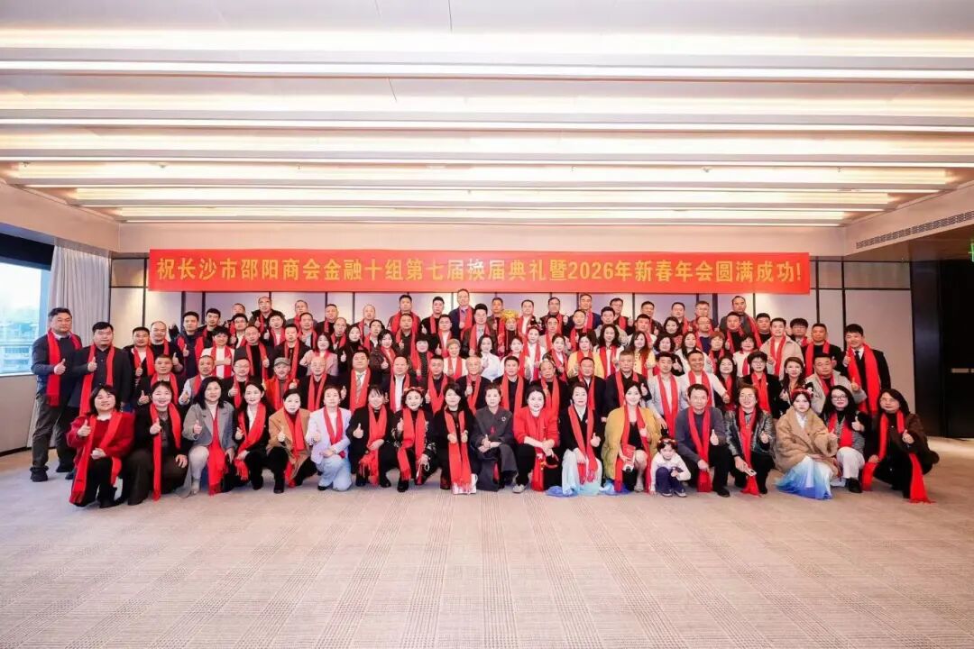 岁序更替,华章日新。1月10日,邵商金融十组第七届换届典礼暨2026年新春年会在长沙成功举办。湖南省人大民族华侨外事委员会原主任委员石光明、湖南省政协经济科技委员会副主任刘顺国、原湖南省政法委副书记石民生等特邀嘉宾,商会会长聂志强、监事会主席刘毅、党总支书记、执行会长兼秘书长李坡,执行会长赵祥华,监事会副主席张军、邓剑波,顾问何刚强、赵连寿等商会领导,各兄弟小组组长及金融十组全体会员齐聚一堂,共话乡情友谊,共绘发展蓝图。活动由陈元、王婕颖主持。