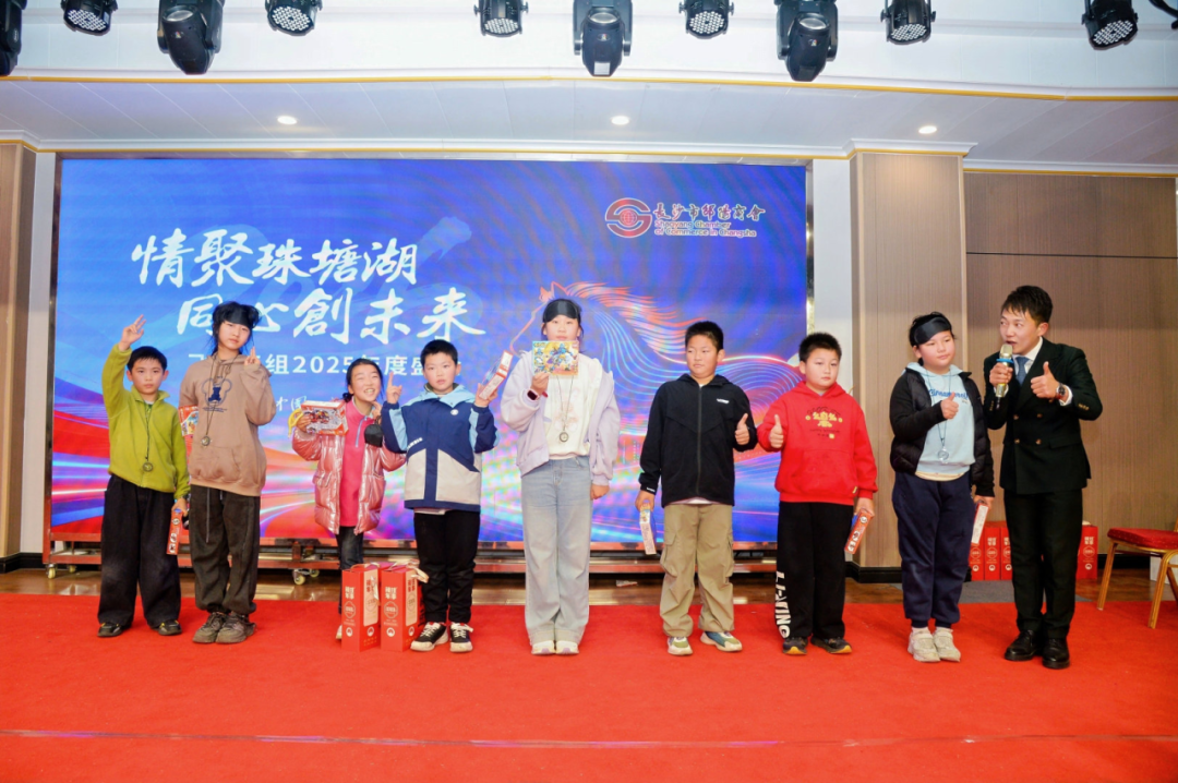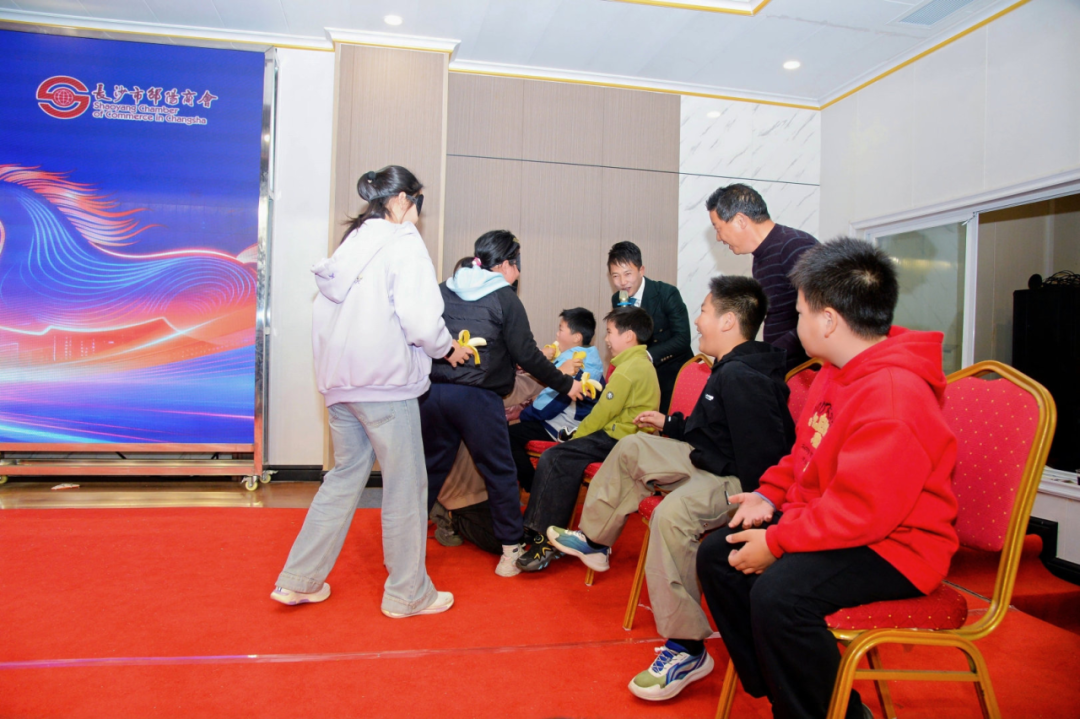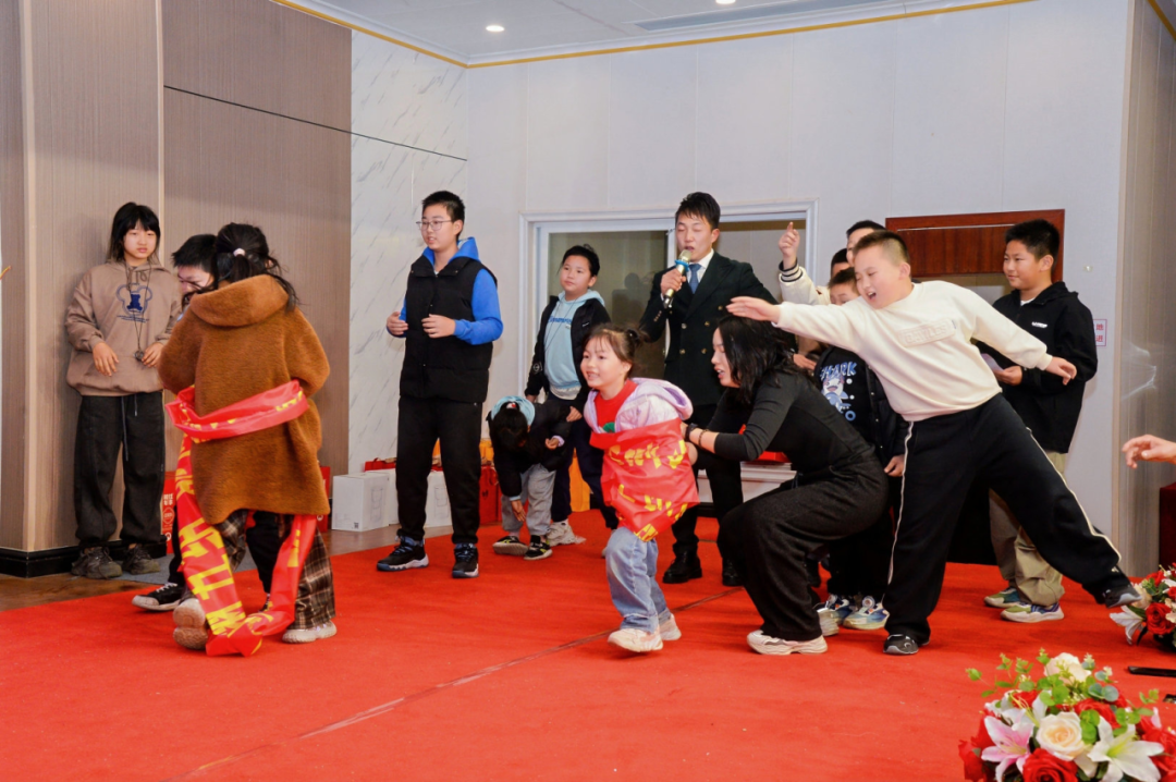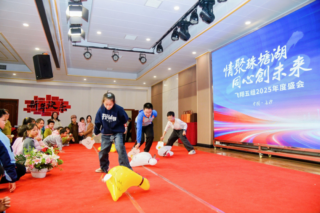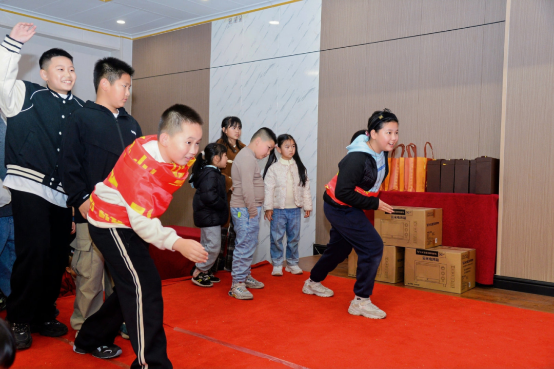 晚宴在丰盛佳肴与趣味游戏中欢声不断。“腰缠万贯”“蒙眼吃香蕉”“赶鸭子过年”等团体游戏,让大人孩子共同投入,现场笑声掌声此起彼伏,洋溢一片欢乐。