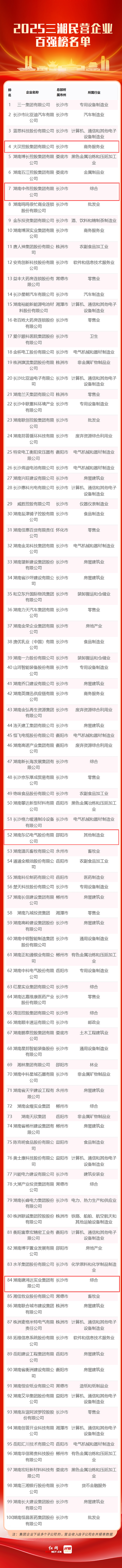 祝贺长沙市邵阳商会四家企业荣登2025三湘民营企业百强榜
