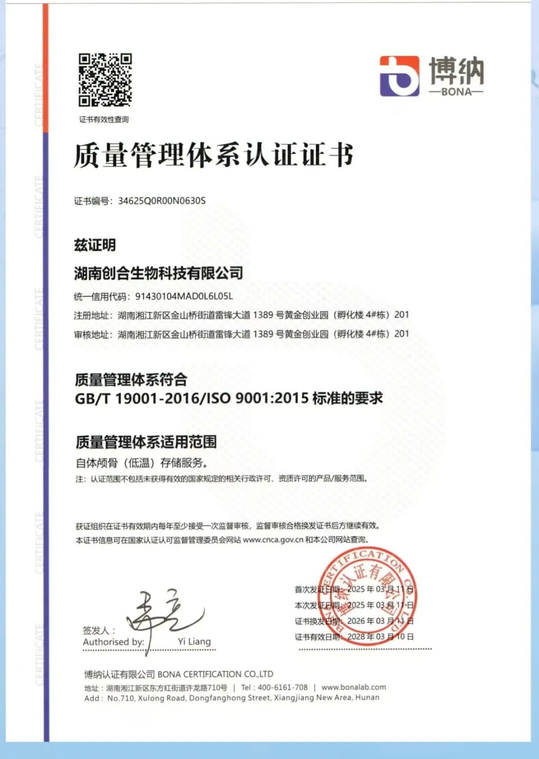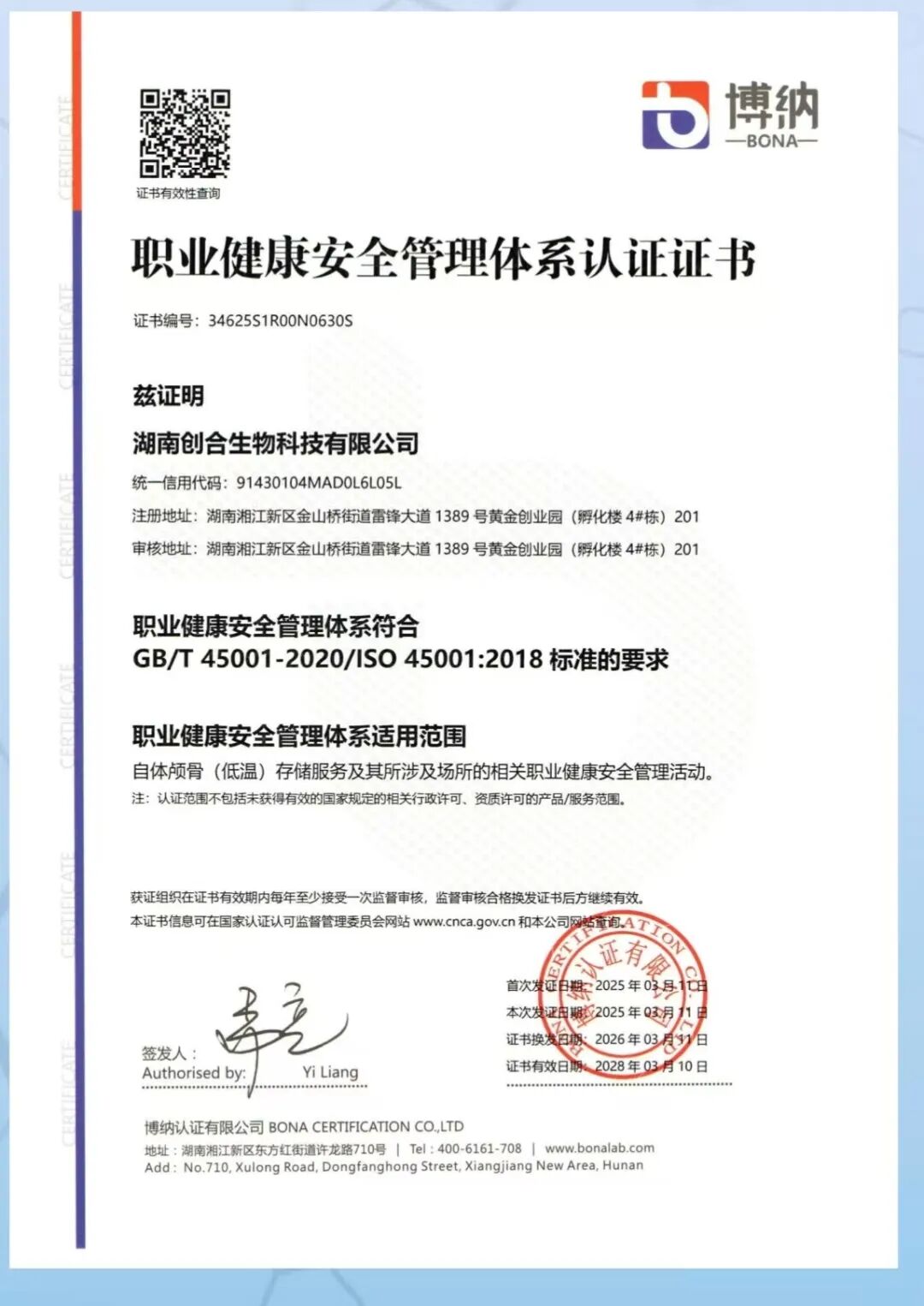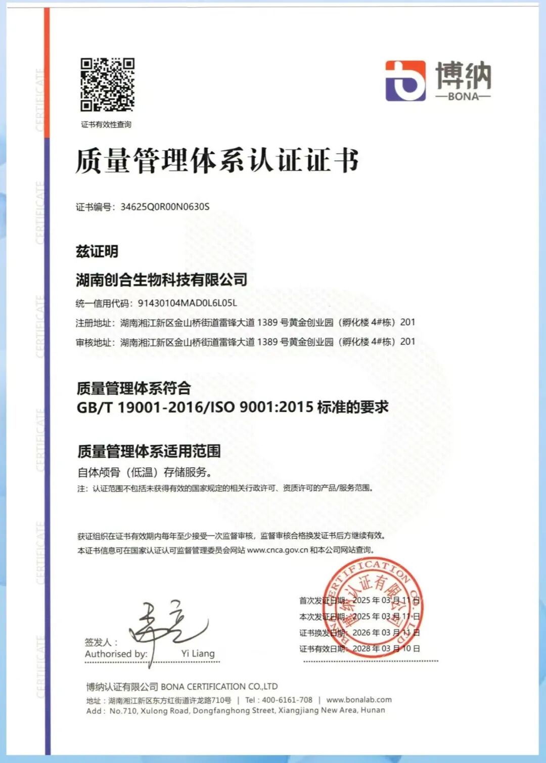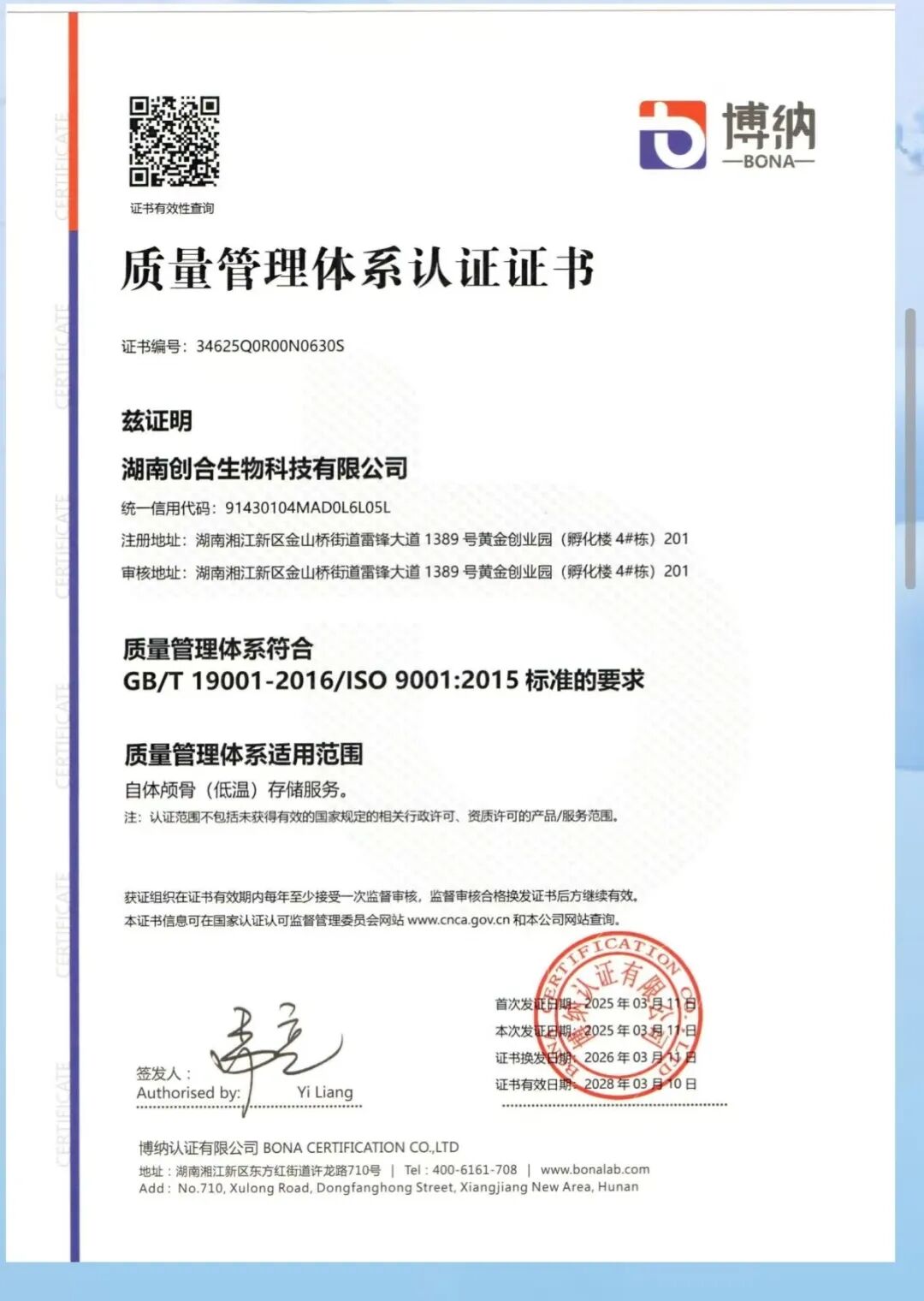 湖南创合生物科技有限公司坐落于湖南湘江新区黄金创业园,以“专注医学低温储存,保障患者生命健康”为核心使命,专业提供自体颅骨深低温存储服务,服务网络已覆盖近百家医疗机构。