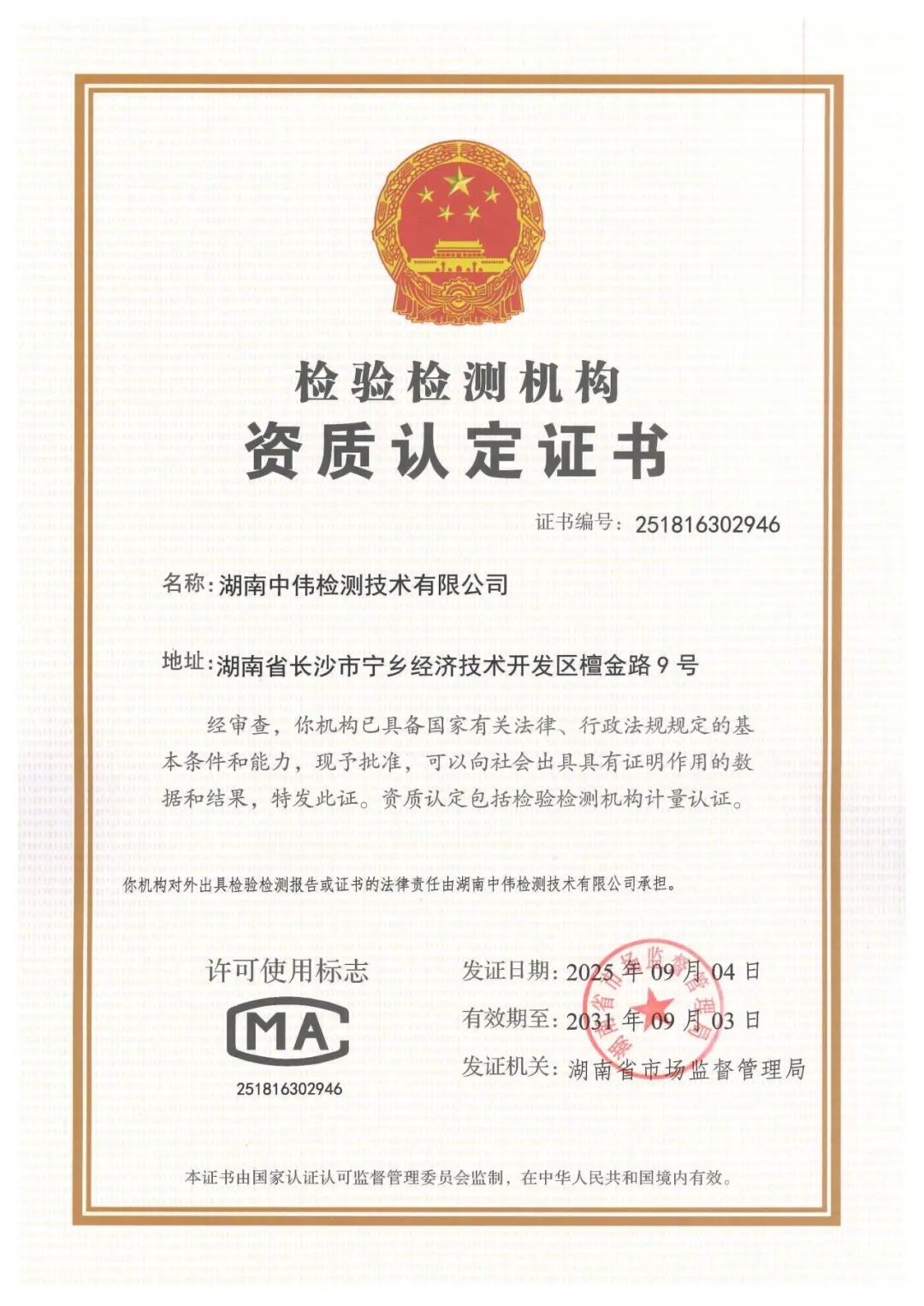 CMA资质的获得,不仅是中伟检测质量管理与技术能力的体现,更是中伟在全国布局服务网络、深度参与新材料产业升级的重要一步。未来,中伟检测将依托“精准检测数据平台+智能诊断服务网络”,持续提升综合服务能力,为行业提供高标准、全周期的检测技术支持。