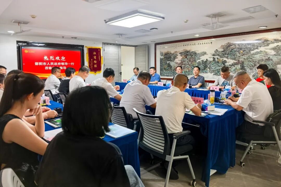 8月25日,邵阳市人民政府副市长贺源,邵阳市人民政府副秘书长邓印强,邵阳市委统战部副部长、市工商联党组书记傅丽华,邵阳市文旅广体局党组书记、局长李驰宇,邵阳市人民政府驻长沙办事处党组书记、主任沈国林,邵阳市城发集团董事长范璟,邵阳市产发集团董事长李茂席,邵阳市工商联党组成员、副主席鞠科文等一行莅临长沙市邵阳商会调研指导,并就湘超联赛邵阳赛区招商合作举行座谈。